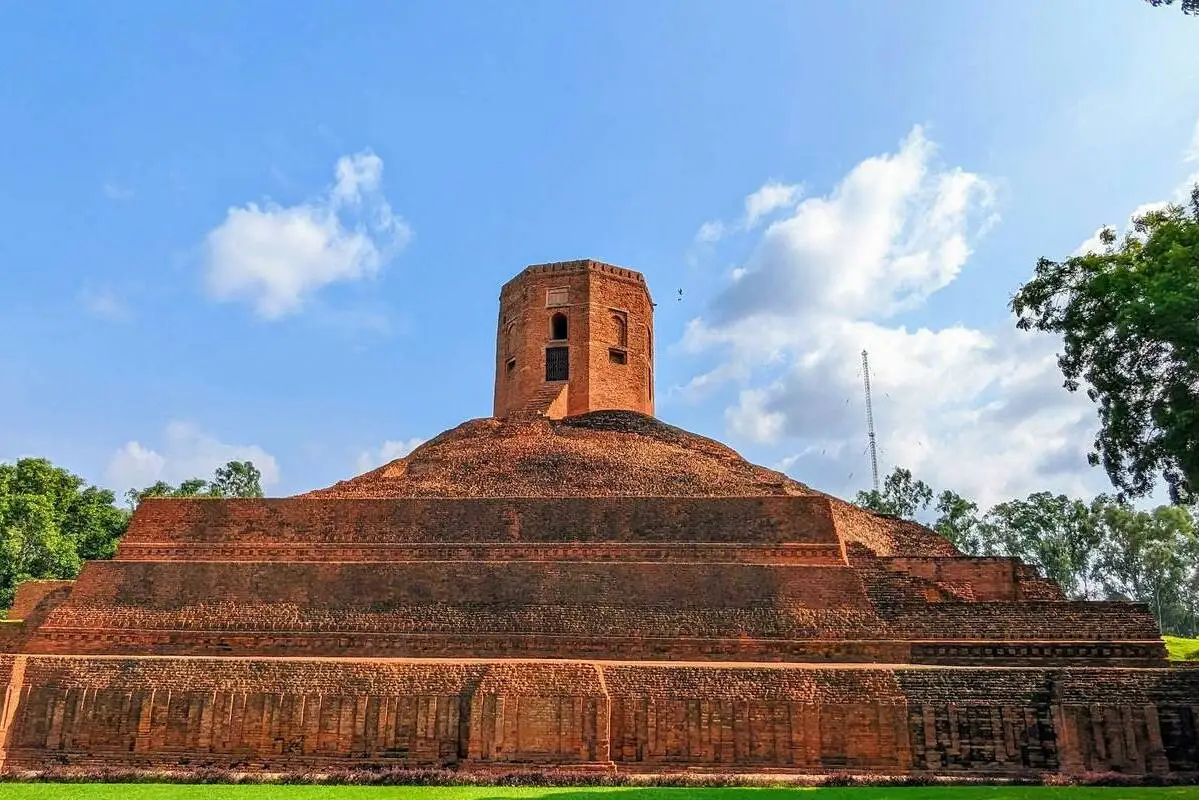 Later, explore Sarnath, where Buddha shared his first sermon. Visit the Dhamek Stupa, see ancient relics at the museum, and stand beside the Ashoka Pillar. End your day with the glowing lamps and chants of the Ganga Aarti at Dashashwamedh Ghat.